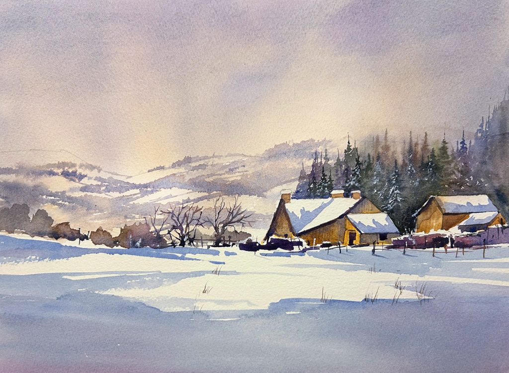 SESSION 2 - SNOWSCENE - WATERCOLOUR AND PASTEL - To purchase the Pre Recorded Paint Along