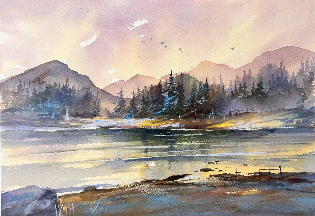 SESSION 1 - TRANQUILL LAKE - WATERCOLOUR AND PASTEL